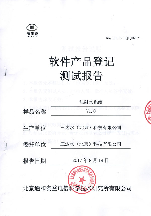 三達生物制藥用“注射水系統(tǒng)”成功通過測試并獲測試報告